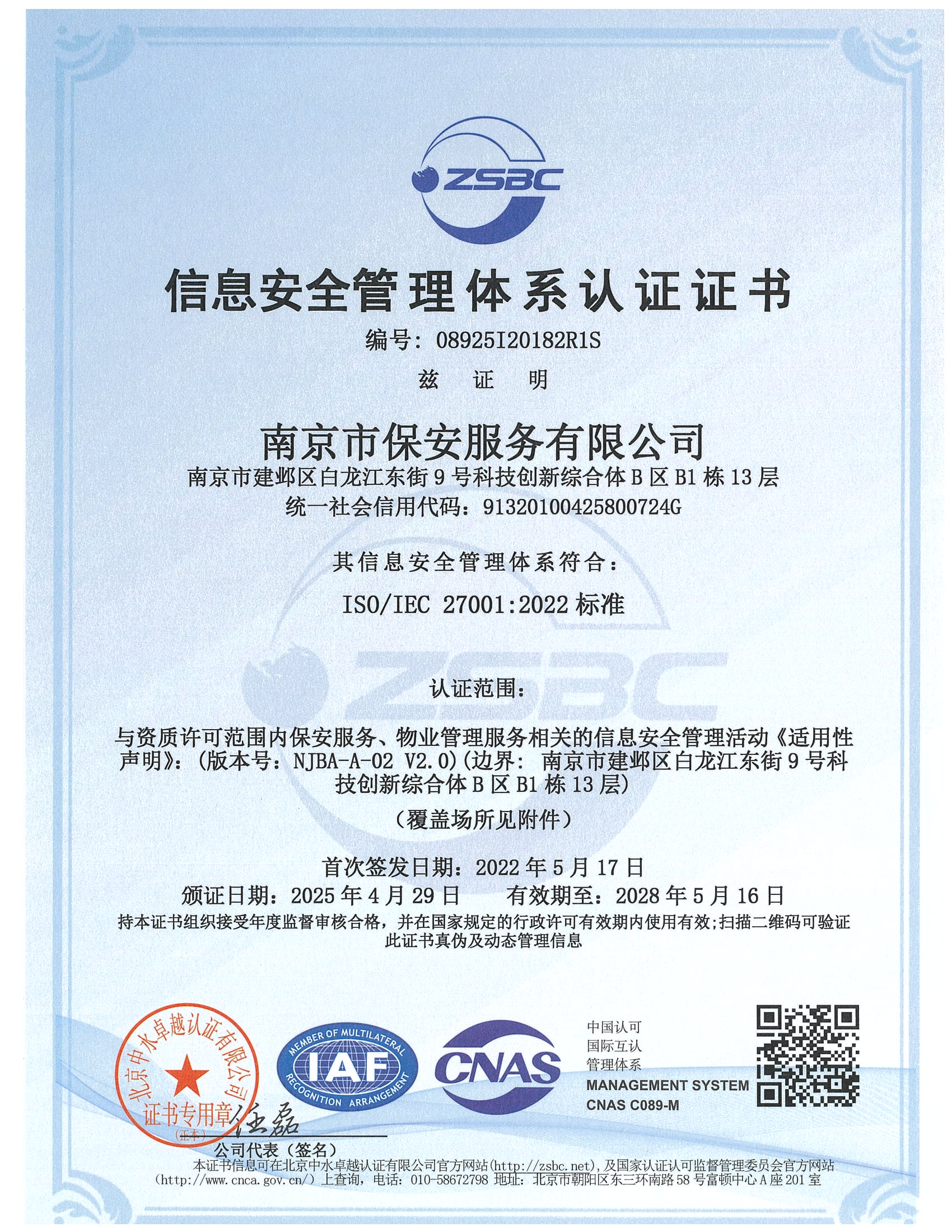 信息安全管理體系認(rèn)證證書(shū)