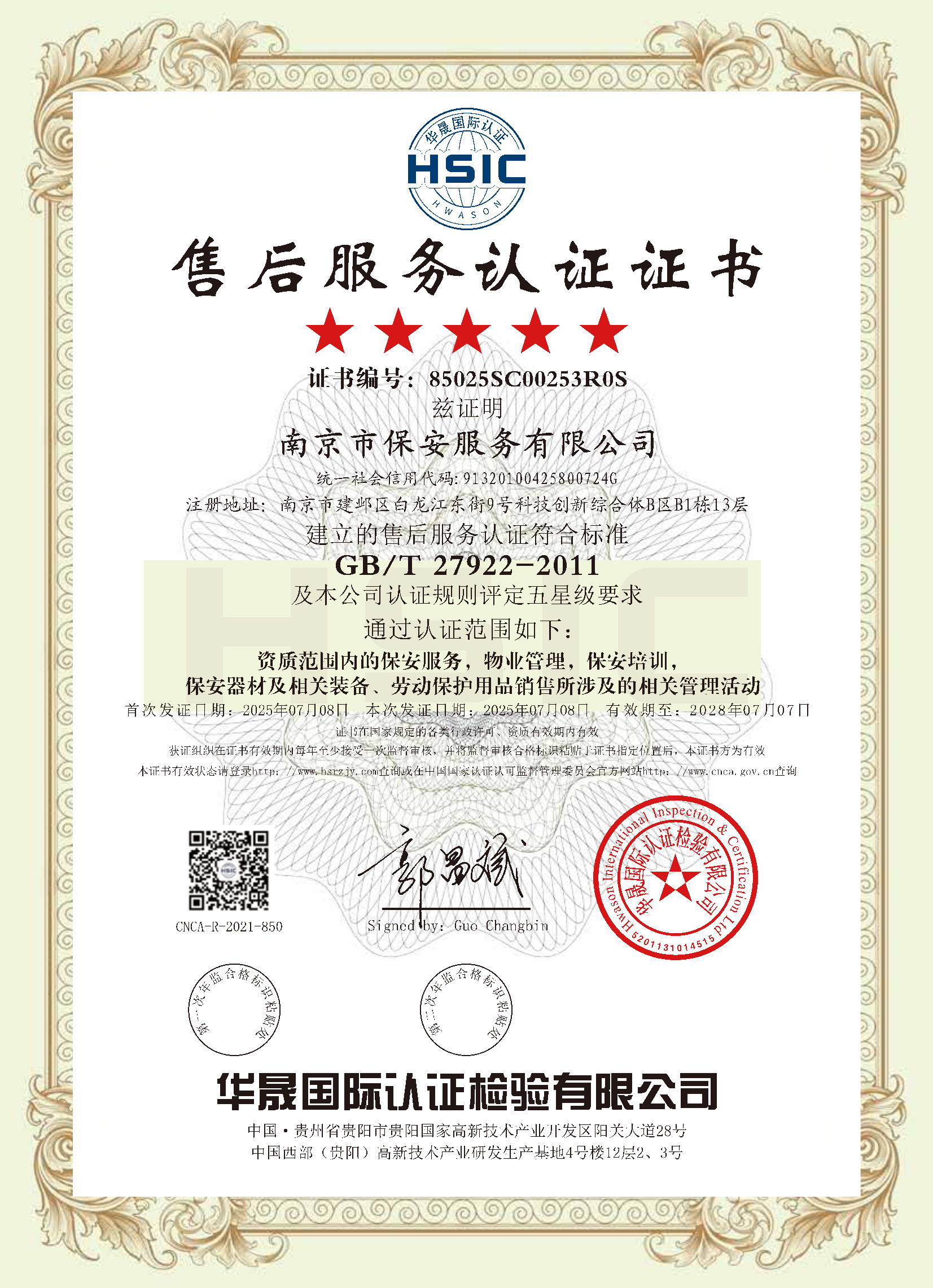 保安服務(wù)一級(jí)認(rèn)證證書(shū)